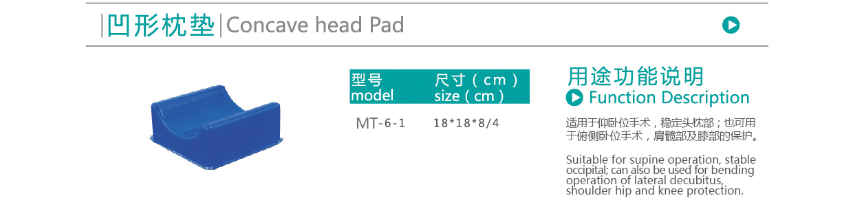 【產品用途】:適用于仰臥位手術,穩定頭枕部;也可用于俯側臥位手術,肩髖部及膝部的保護