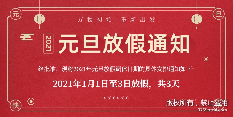 2021年1月1日至2021年1月3日,共計3天,2021年1月4日正常上班,放假期間,望各位出行注意防護(hù)以及保暖哦!